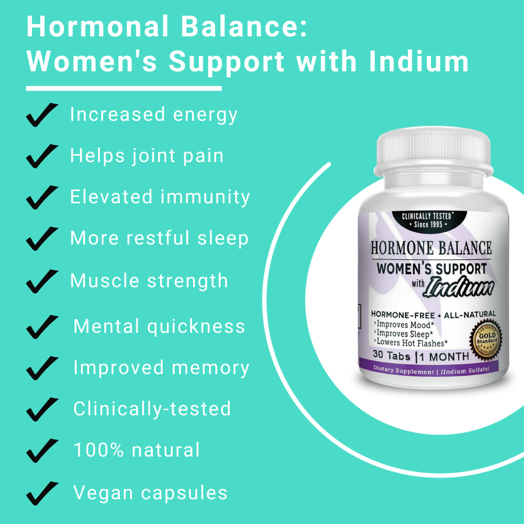 Our all-natural menopause support supplements will alleviate menopause symptoms so you can carry on with your daily life as usual. Combat fatigue, insomnia, osteoporosis and many other menopause symptoms with our 30-day menopausal dietary supplements. This unique hormonal balance with indium formula contains a variety of all-natural ingredients mixed into the perfect concoction to get you back to your healthy self in no time. Indium is known to provide countless health benefits such as the following: